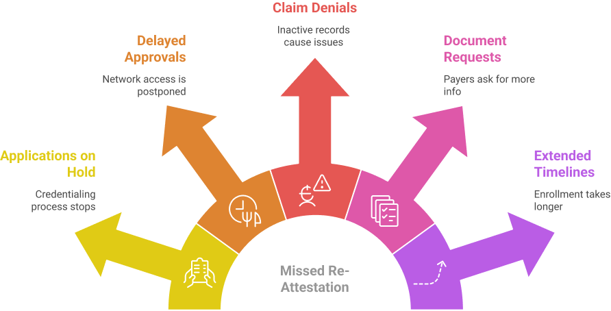 A missed re-attestation renders the profile inactive. Providers cannot access inactive profiles.